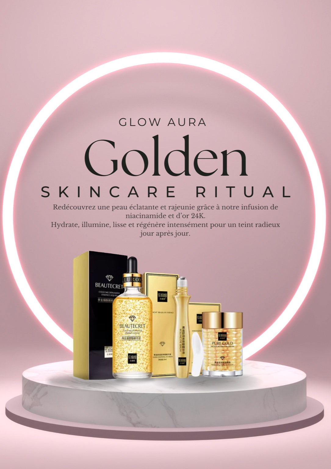 Glow Aura célèbre une beauté naturelle et lumineuse à travers des soins inspirés du luxe.